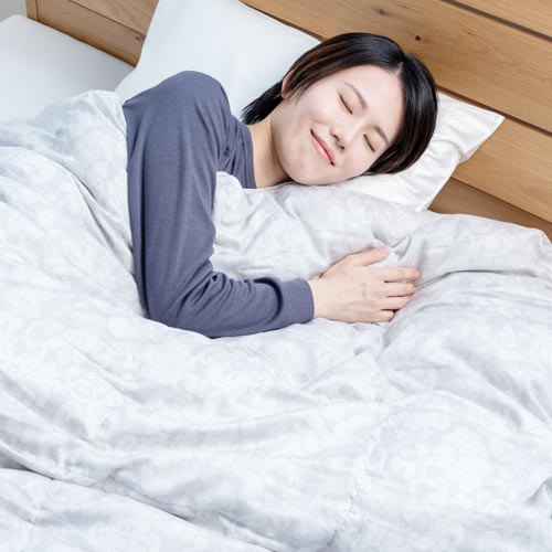 シルクと羽毛を惜しみなく用い、包み込まれるような安心感を実現。さらに布団内の環境を整え、心身ともにやさしく寄り添う上質な眠りをお届けします。